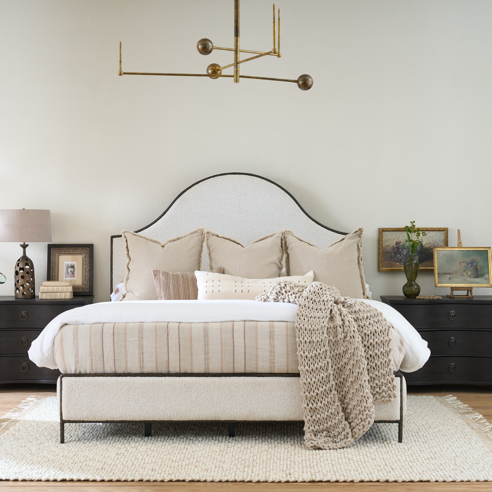 MATERIALS & FINISHES: Berber Fleece Fabric with Hammered Black Metal Frame